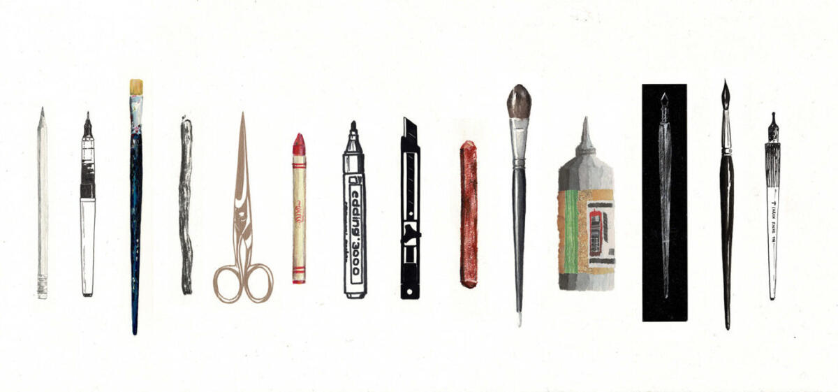 Meine Werkzeugpalette, von Acryl bis Zeichentusche