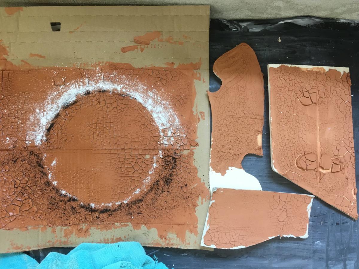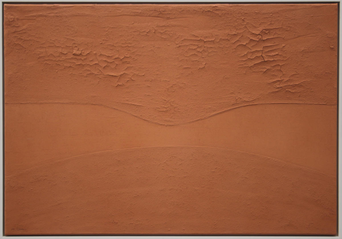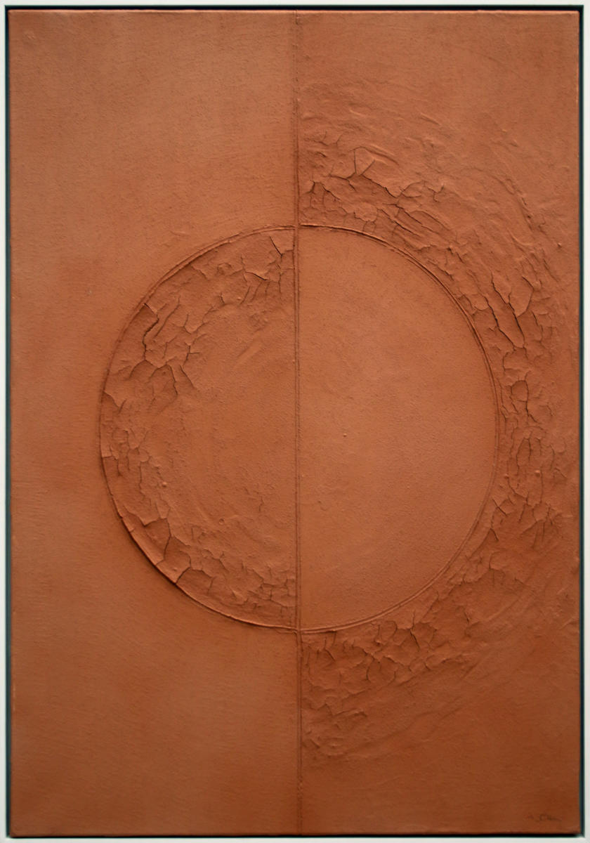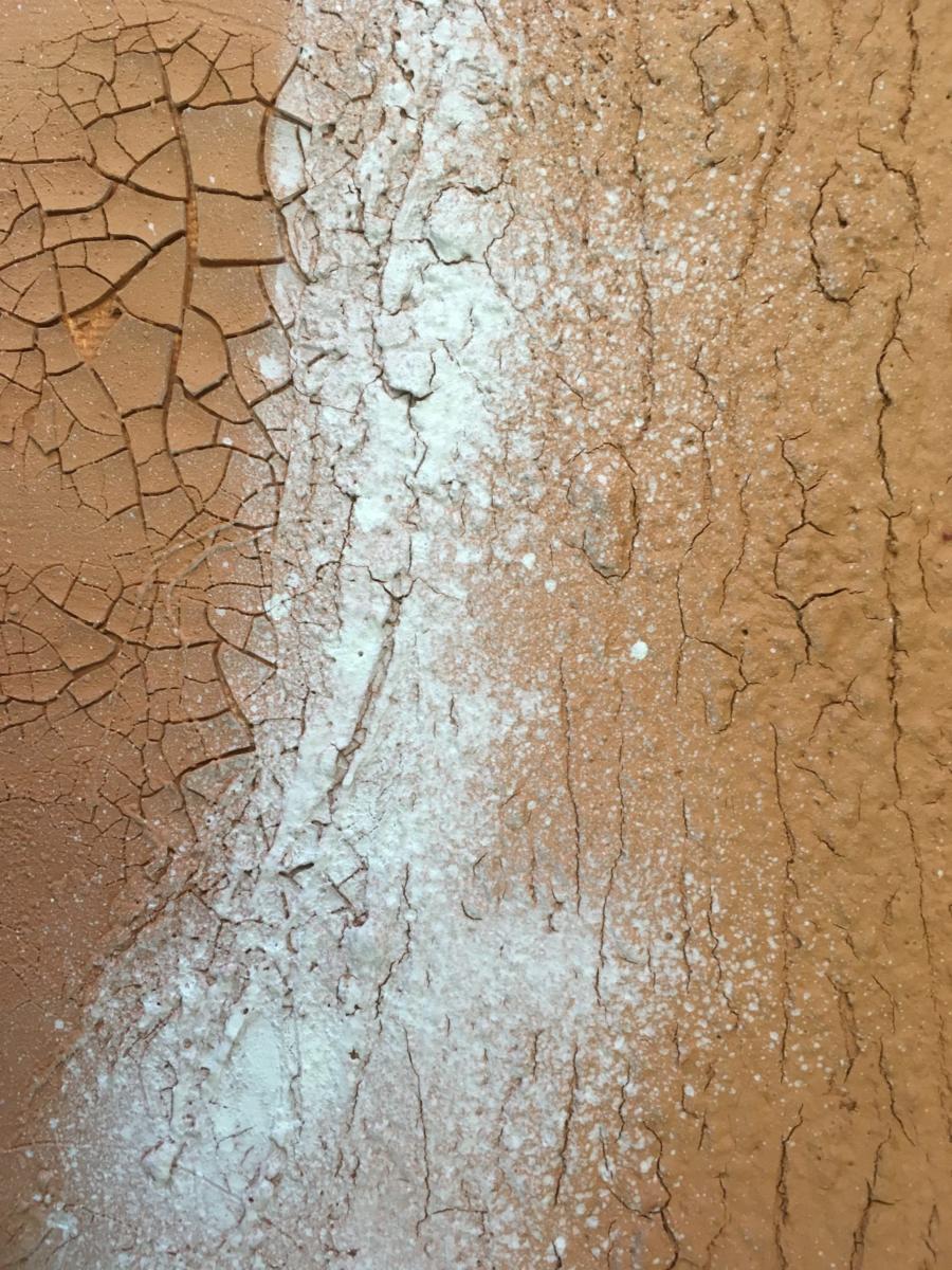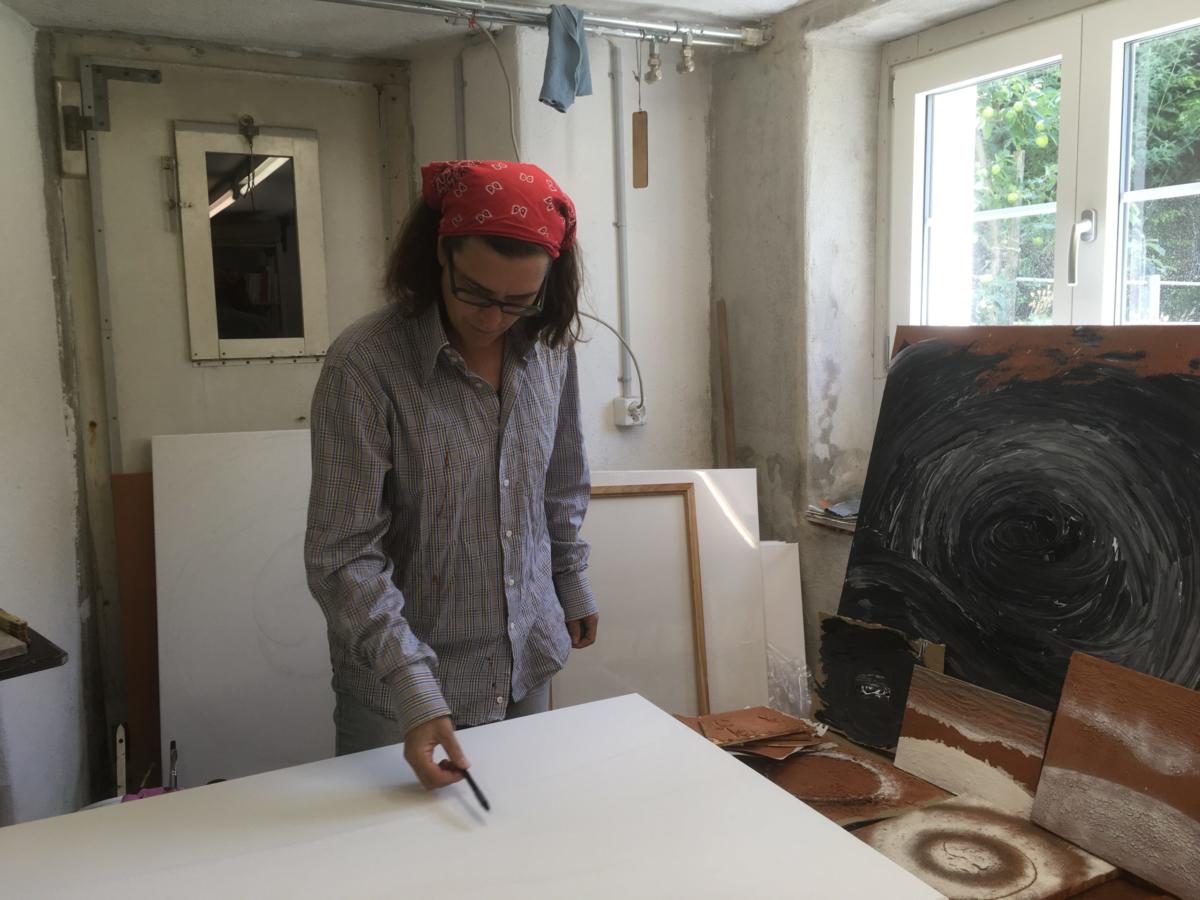 Erde hat eine starke Symbolkraft im Zusammenhang mit Tod, Vergänglichkeit und Sterben. Mit vielen Experimenten gelang es mir, eine Mischung herzustellen, die sich auf Leinwand anbringen liess und dennoch beim Trocknen die typischen Risse bildete. So konnte ich in meinen grossformatigen Bildern auf die Farbe verzichten und dieses wunderbare Material sprechen lassen.