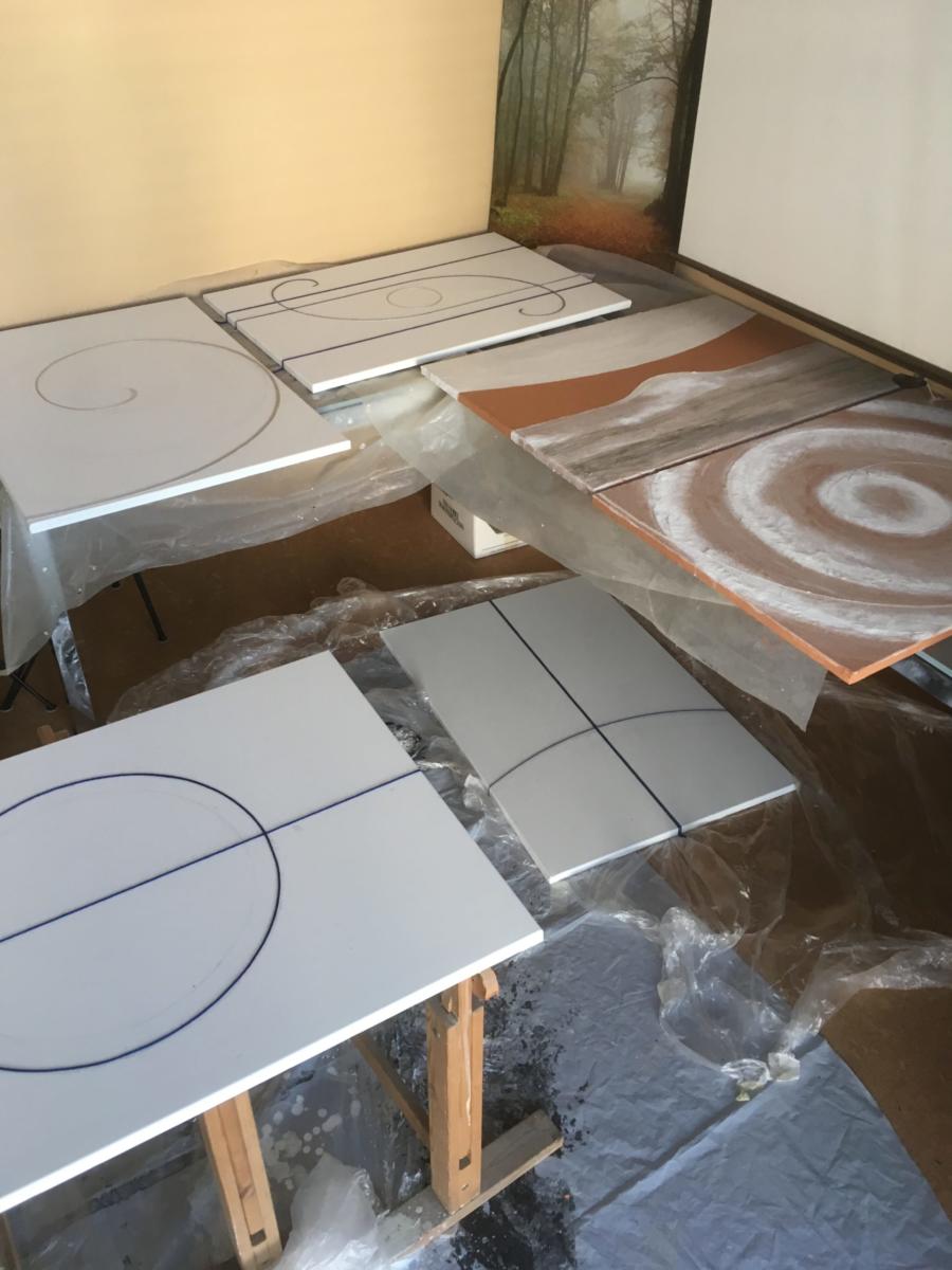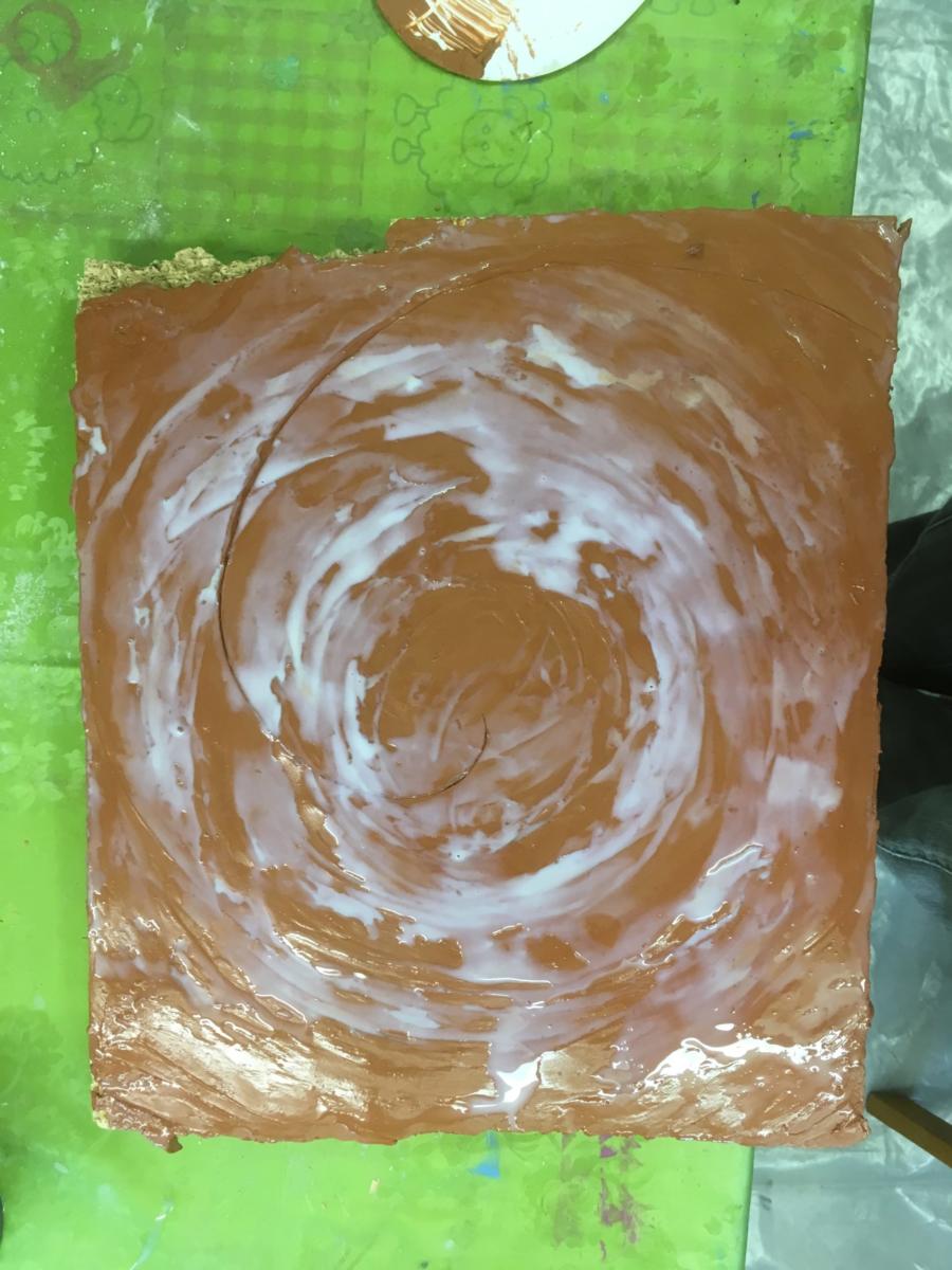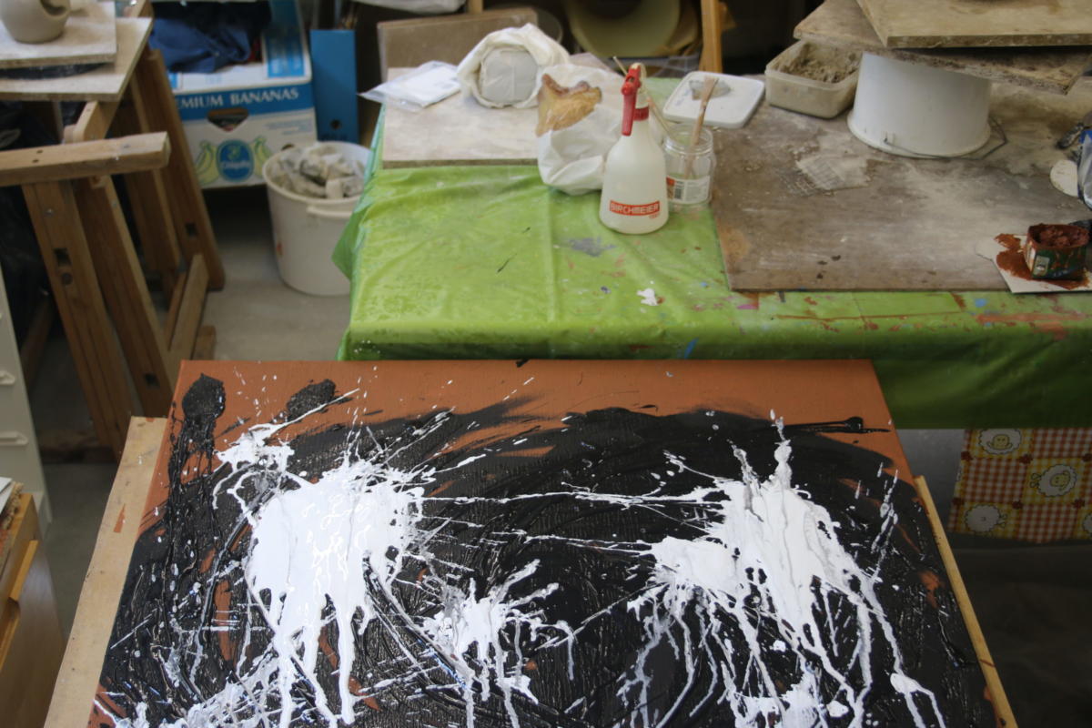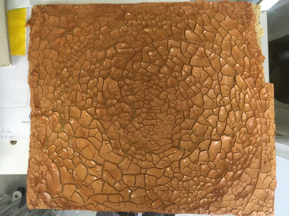 Erde hat eine starke Symbolkraft im Zusammenhang mit Tod, Vergänglichkeit und Sterben. Mit vielen Experimenten gelang es mir, eine Mischung herzustellen, die sich auf Leinwand anbringen liess und dennoch beim Trocknen die typischen Risse bildete. So konnte ich in meinen grossformatigen Bildern auf die Farbe verzichten und dieses wunderbare Material sprechen lassen.